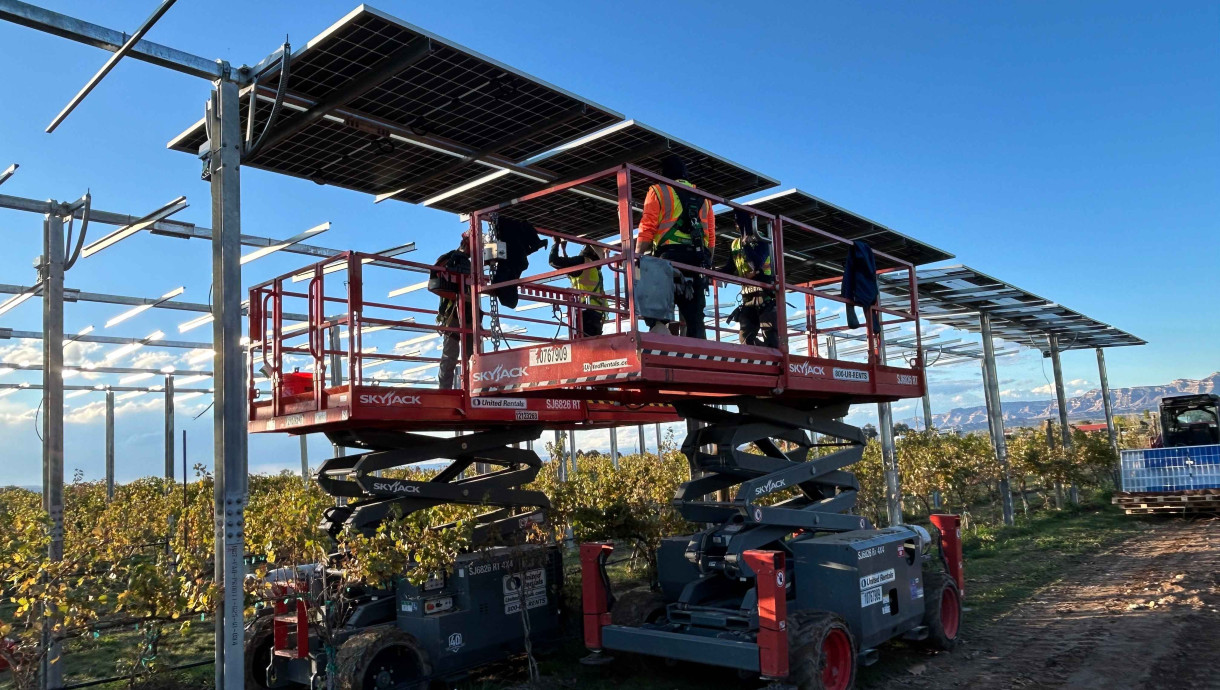 La estructura Agri-PV se instala sobre las hileras de vid, permitiendo que la luz natural llegue al follaje mientras se genera energía limpia en el lugar. La instalación forma parte de un esfuerzo científico más amplio para comprender mejor el rendimiento de los viñedos bajo condiciones Agri-PV.